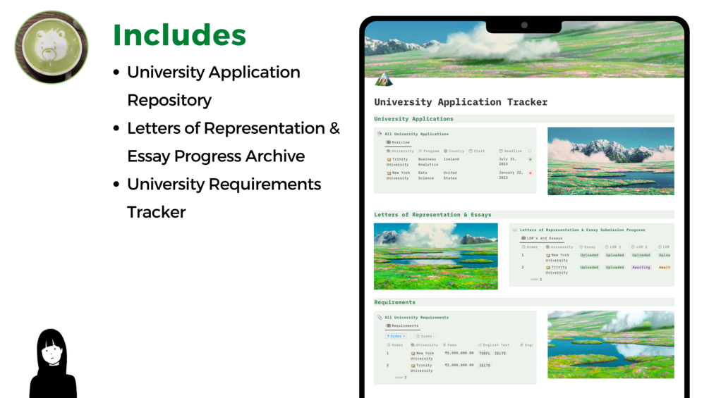 This Notion University Application Tracker includes: